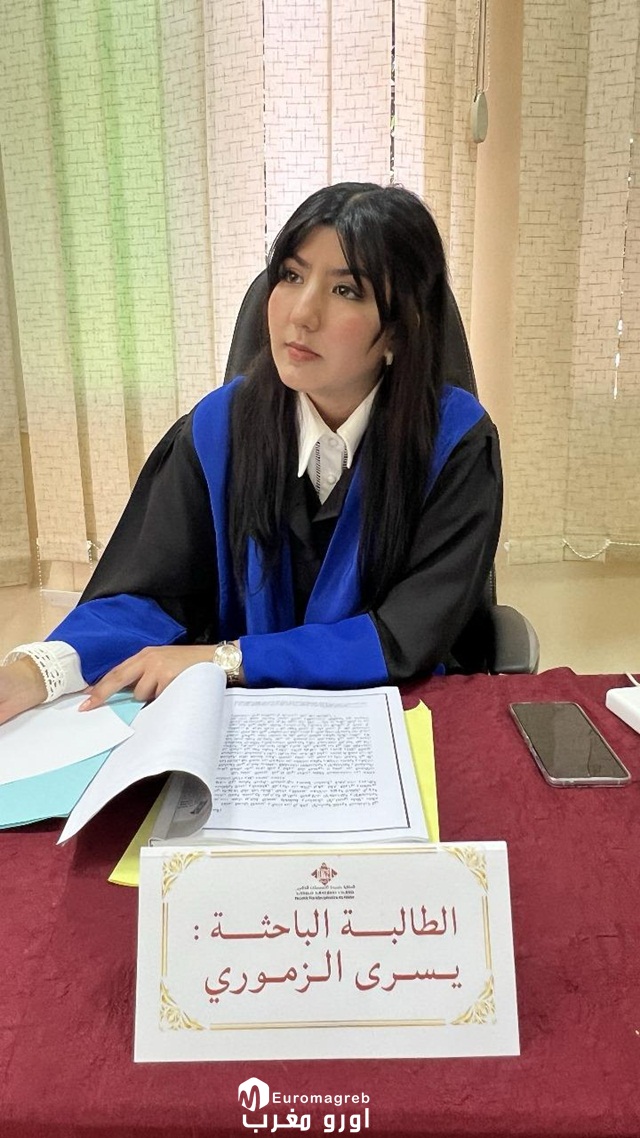 الطالبة الباحثة يسرى الزموري تناقش رسالة الماستر بالكلية متعددة التخصصات بالناظور
