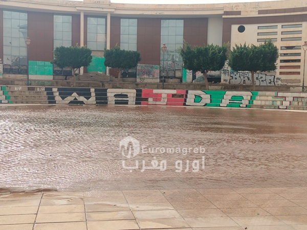 أما مدرجات الساحة، فقد أصبحت في حالة متدهورة، وتحولت إلى مرتع لمختلف مظاهر الإهمال، بعدما كانت في السابق فضاءً للجلوس والراحة واستعداد الطلبة للامتحانات ولم يقف الأمر عند هذا الحد، إذ تحولت البناية المجاورة للساحة إلى ملاذ للمتشردين والمنحرفين، في ظل غياب المراقبة والصيانة، فيما أضحت واجهتها المطلة على الساحة مكباً للنفايات وأصبح وسطُ الساحةِ تجمعًا للمياه الراكدة الناتجة عن الأمطار. نتيجة غياب قنوات صرف صحي، وهو ما يشكل خطراً حقيقيا على صحة المارة ويزيد من تشويه المشهد الحضري.