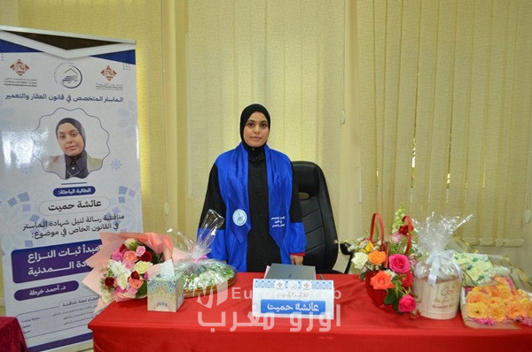 ناقشت الطالبة الباحثة عائشة حميت، مساء يوم الجمعة 11 أبريل 2026، رسالتها لنيل دبلوم الماستر المتخصص في قانون العقار والتعمير، وذلك بالقاعة المخصصة للمناقشات بالكلية متعددة التخصصات بالناظور، في أجواء علمية متميزة طبعتها الجدية والنقاش الأكاديمي الرصين. وتألفت لجنة المناقشة من السادة الأساتذة: