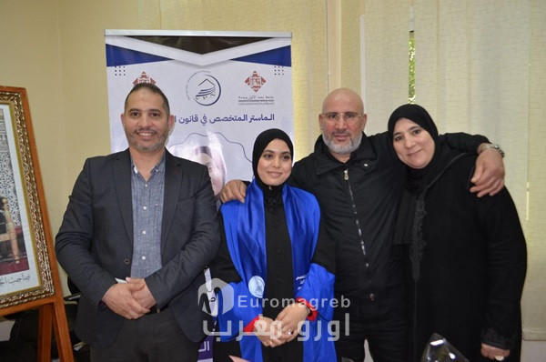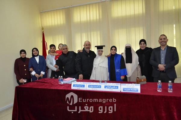 وخلال عرضها، أبرزت الطالبة أن مبدأ ثبات النزاع، رغم أهميته في تحقيق استقرار الخصومة وضمان حقوق الدفاع، لم يعد يُؤخذ به في صورته الجامدة، حيث تدخل المشرع المغربي لإقرار مجموعة من الاستثناءات التي تسمح بتعديل نطاق النزاع، سواء بإرادة الأطراف من خلال الطلبات العارضة، أو بتدخل القاضي في حدود سلطته التقديرية، وذلك تحقيقًا لاعتبارات العدالة والنجاعة القضائية وتفادي تعدد المنازعات. كما خلصت إلى أن المشرع المغربي نجح إلى حد كبير في التوفيق بين استقرار الخصومة ومرونتها، وإن ظل ذلك دون القطع النهائي مع بعض مظاهر الصرامة التشريعية. وقد أشادت لجنة المناقشة بالقيمة العلمية للرسالة، وبجِدّة موضوعها وراهنيته، معتبرةً أنه يلامس إشكالات واقعية تطرحها الممارسة القضائية، كما قدمت ملاحظات علمية بناءة دعت الطالبة إلى استثمارها في أفق تطوير البحث. ومن جهته، عبّر الأستاذ المشرف الدكتور أحمد خرطة عن اعتزازه بالمستوى العلمي للباحثة، منوهًا بالدينامية الأكاديمية التي تعرفها الكلية في مجال البحث العلمي. وبعد مناقشة علمية مستفيضة استمرت لأزيد من ساعتين، قررت اللجنة قبول الرسالة والتنويه بقيمتها العلمية، ومنح الطالبة نقطة 18,00/20 مع التوصية بطبع ونشر البحث. وقد عرفت الجلسة حضورًا وازنًا لثلة من الأساتذة والطلبة الباحثين، إلى جانب أفراد أسرة الطالبة وأصدقائها، في أجواء احتفالية مميزة عكست أهمية هذا التتويج العلمي، الذي يضاف إلى سلسلة النجاحات الأكاديمية التي تشهدها الكلية متعددة التخصصات بالناظور