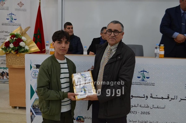 وأشادت الطالبة كذلك بمجهودات أعضاء الفريق البيداغوجي، الذين أسهموا في توفير تكوين علمي متكامل ومواكب للمستجدات التشريعية والرقمية، مما عزز من معارف الطلبة ومكتسباتهم، كما حيّت زميلاتها وزملاءها في الفوج الأول، مستحضرة روح التضامن والعمل الجماعي التي ميّزت تجربتهم داخل الماستر. وفي ختام كلمتها، رحّبت بطلبة الفوج الثاني، متمنية لهم مسارًا موفقًا، وداعية إياهم إلى الاجتهاد والاستفادة المثلى من خبرات الأساتذة، وجعل التعاون والاحترام أساسًا لمسيرتهم الأكاديمية والمهنية.