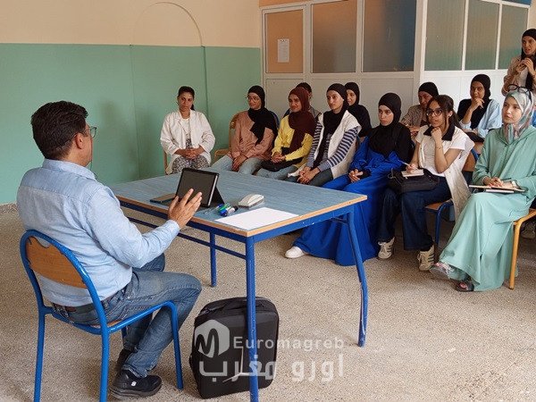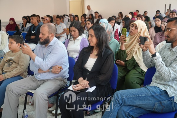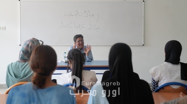وفي اطار المساهمة في تاطير شاعرات وشعراء المستقبل، وترسيخ قراءة الشعر وكتابته عند الاجيال الجديدة، اطر الشاعر محمد بلمو من جهته ورشة تفاعلية حول كتابة الشعر، استهلها بتقديم مركز حول فن الشعر باعتباره من اقدم الفنون واكثرها ممارسة في مختلف بقاع العالم، متوقفا عند عراقته في تاريخ الادب العربي حيث كان يعتبر “لسان العرب”، وقد مكن المشاركات في الورشة (20 تلميذة من الثانوية)، من استكشاف مهارات الكتابة الشعرية وتقنياتها، مقدما توضيحات ونماذج تفاعلية، حول بعض المفاهيم مثل المجاز والاستعارة والانزياح، مجيبا عن مختلف الاسئلة التي تلقاها من المشاركات.
