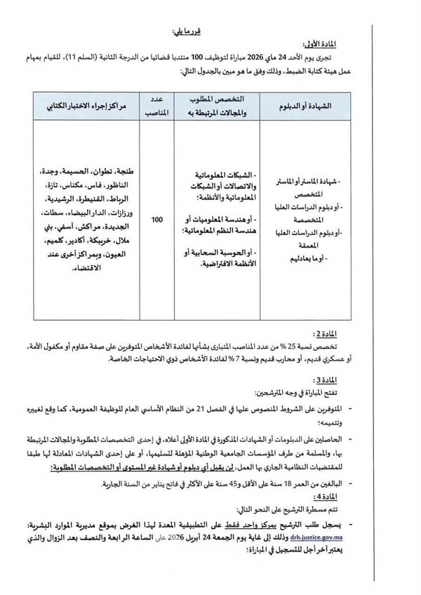 إن المرحلة الراهنة تفرض إعادة النظر في فلسفة التوظيف داخل قطاع العدالة، بما يضمن انسجامًا حقيقيًا بين التكوين الأكاديمي ومتطلبات الوظيفة العمومية، ويعيد الاعتبار للتخصص القانوني داخل مؤسساته الطبيعية. فالإصلاح الحقيقي للعدالة لا يمر فقط عبر تحديث القوانين، بل أيضًا عبر حسن اختيار الموارد البشرية القادرة على تنزيلها بكفاءة واحترافية.