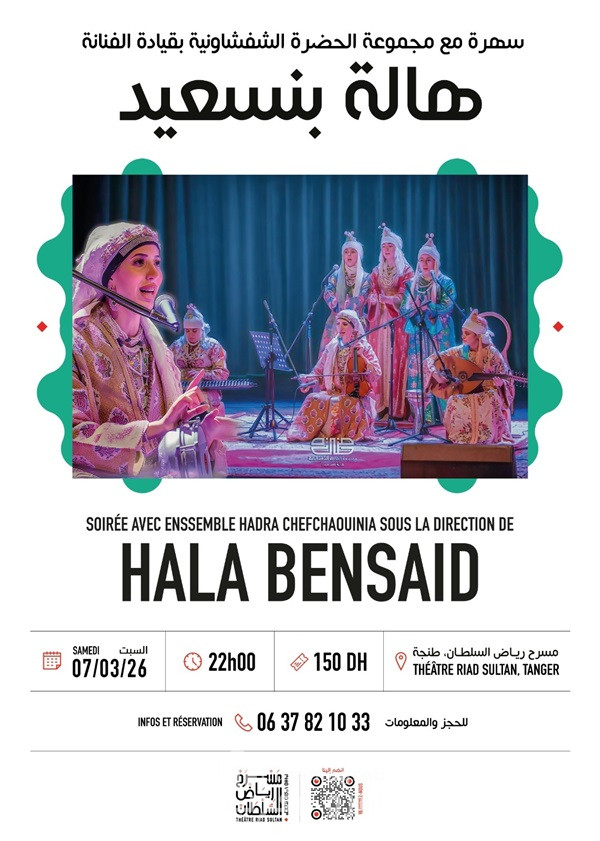 تنطلق فعاليات برنامج مارس/رمضان لمسرح رياض السلطان بمدينة طنجة، يوم 07 مارس بسفر موسيقي مذهل إلى قلب التقاليد الشفشاونية مع هالة بنسعيد وفرقتها، من خلال فن الحضرة الشفشاونية، حيث تتعانق الإيقاعات الساحرة مع الأصوات الروحية والآلات التقليدية في أجواء غامرة ومفعمة بالإحاسيس، في تجربة حسية تحتفي بتاريخ المنطقة وروحها، وتمزج بين العمق الثقافي والجمال اللحني والقوة التعبيرية، في انسجام تام مع روحانية شهر رمضان.